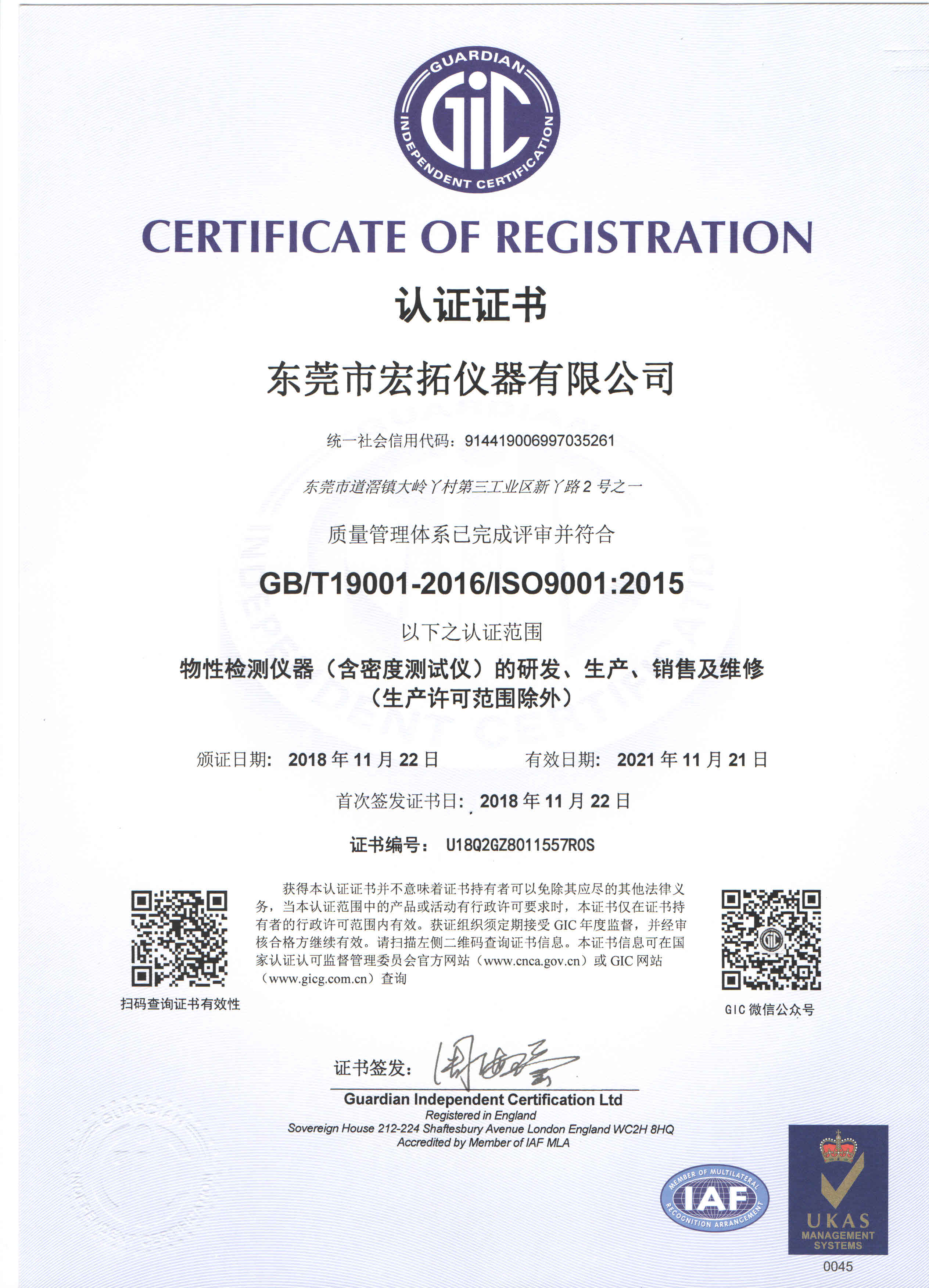 ISO9001質(zhì)量管理體系認證的終審順利通過,證明我司在生產(chǎn)中嚴格把控產(chǎn)品質(zhì)量,確保每一臺儀器從生產(chǎn)到銷售都讓每一位客戶買的放心,用的安心,對于我們而言,也是儀器市場對宏拓這一品牌的質(zhì)量認可。同時也證明東莞宏拓儀器將更進一步的成長,為公司的下一步發(fā)展做好最重要的鋪墊。