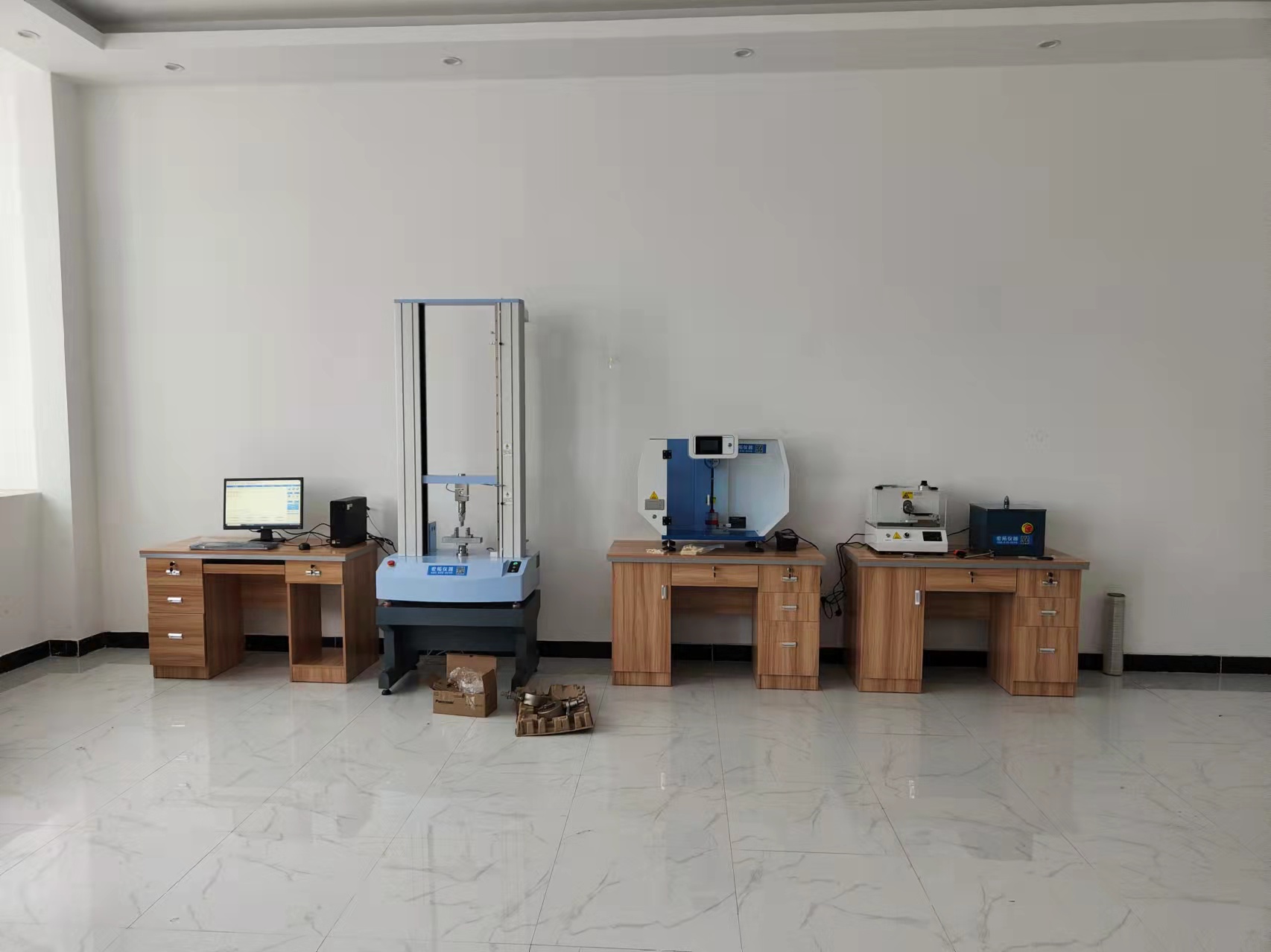 同益高分子是一家做高分子塑料的上市公司,公司總部設(shè)在深圳,這次深圳總部訂購了一套高分子塑料檢測(cè)儀器,包含萬能材料試驗(yàn)機(jī),熔融指數(shù)儀,熱變形維卡溫度測(cè)試儀,密度計(jì),燃燒試驗(yàn)箱,沖擊試驗(yàn)機(jī)等。